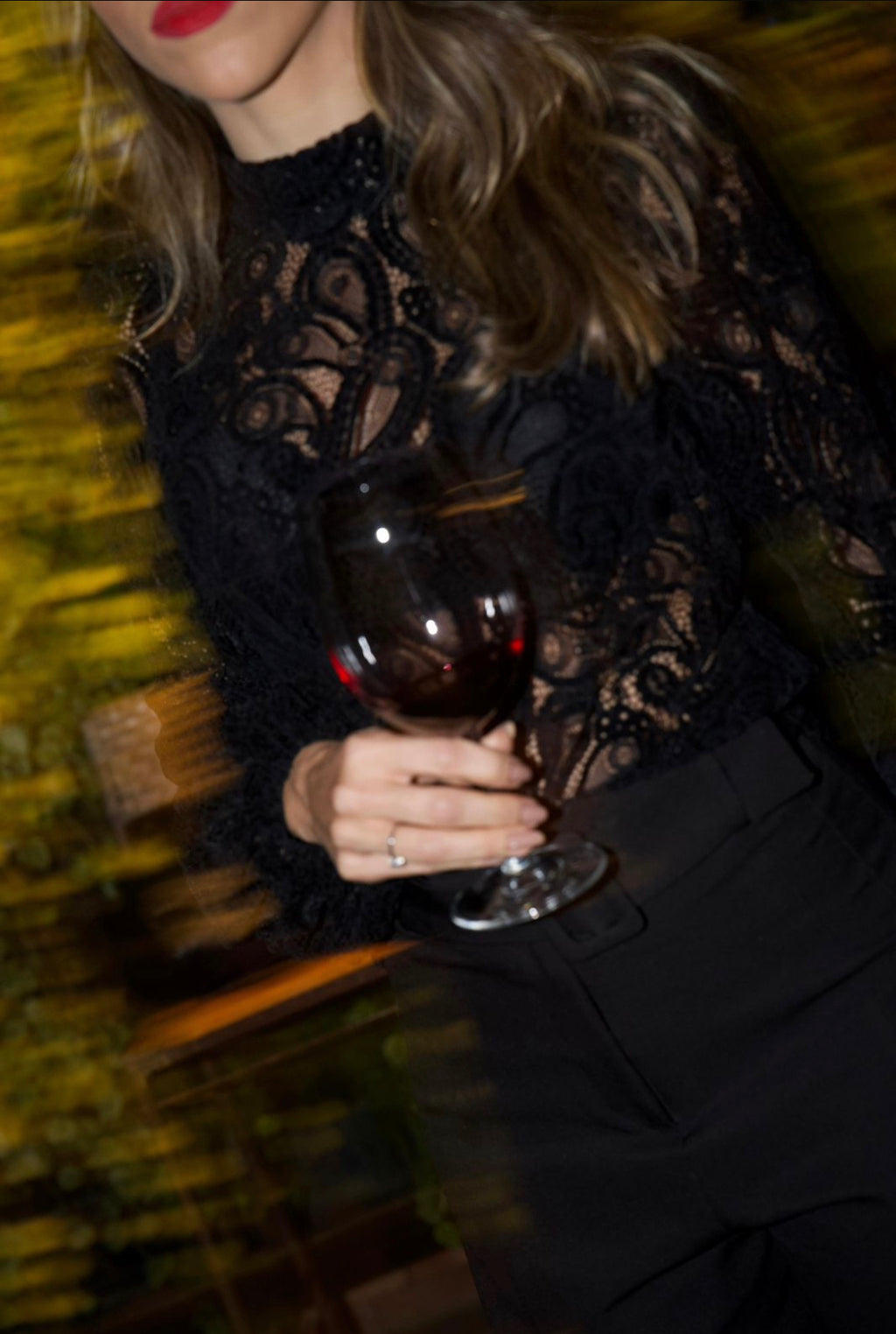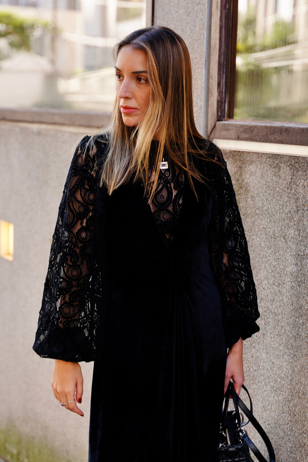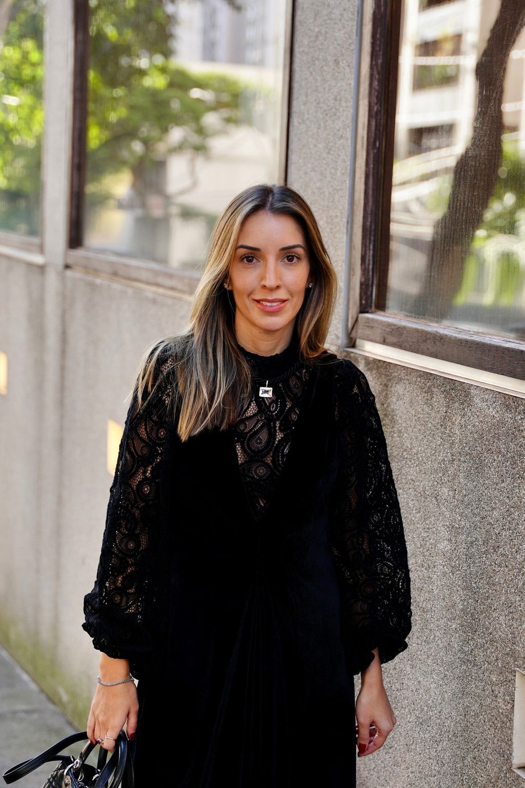 Nossa blusa renda vazada aveludada manga bufante é um must have da nossa coleção.